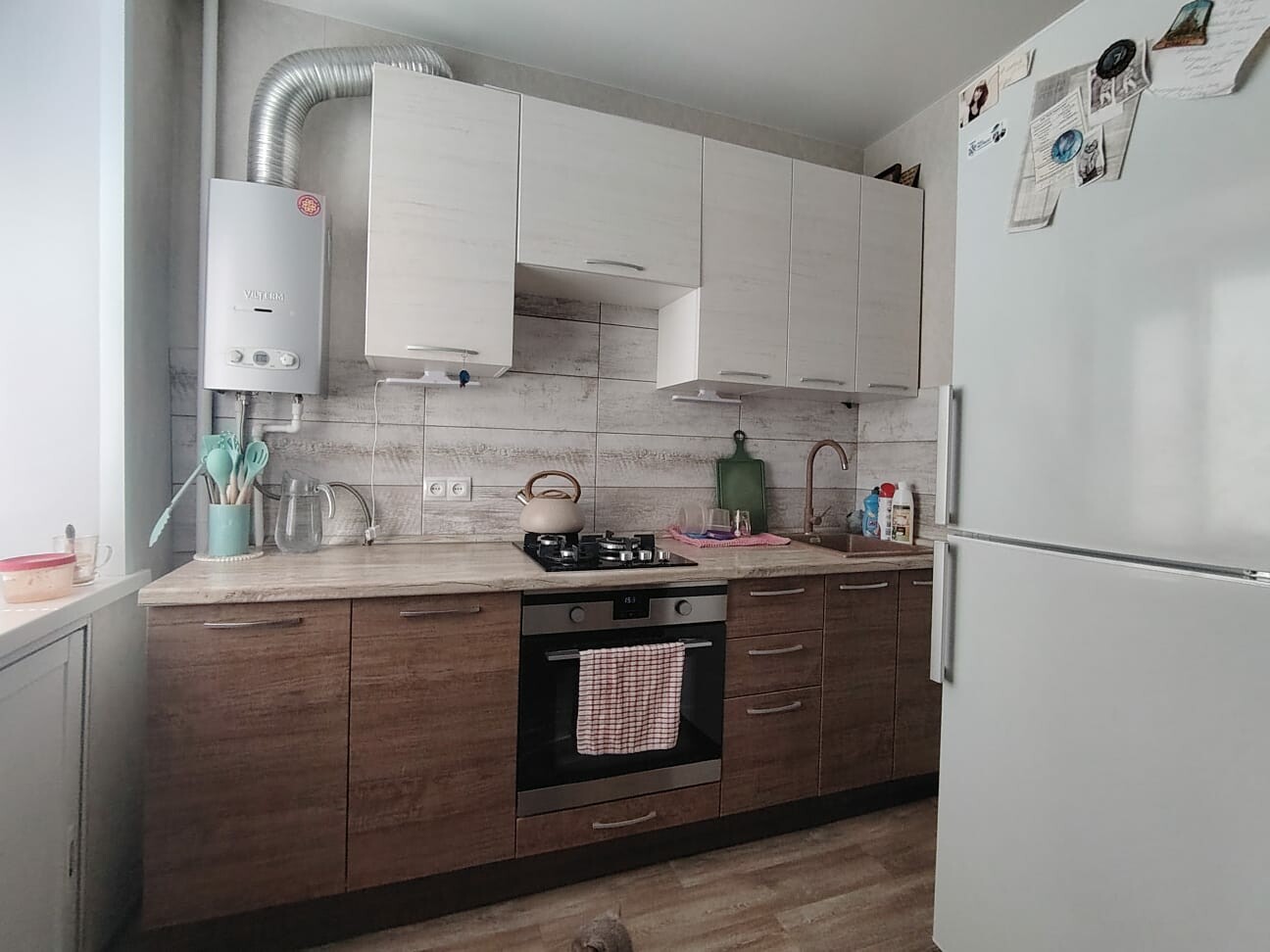 Квартира в хорошем состоянии. Остаются все шкафы, кухня со встроенной техникой и столовой группой. Чистая, теплая,не торцевая. Отличные соседи.